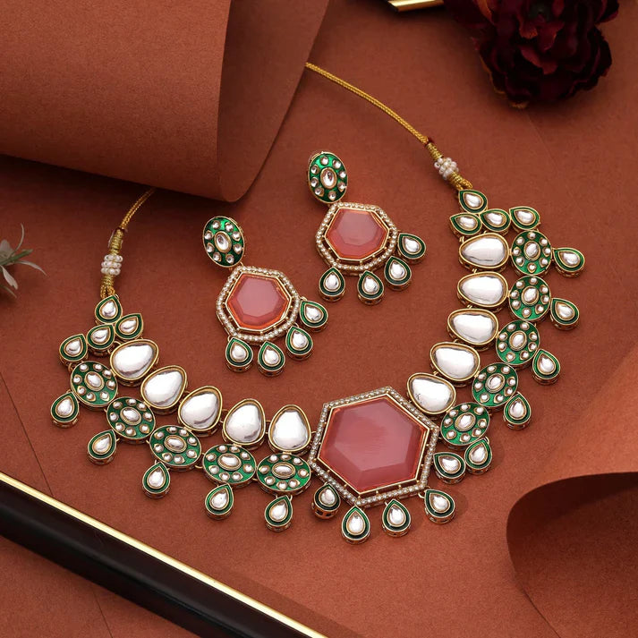 Black & White Color Choker Kundan Necklace Set (KN1194NBLU)