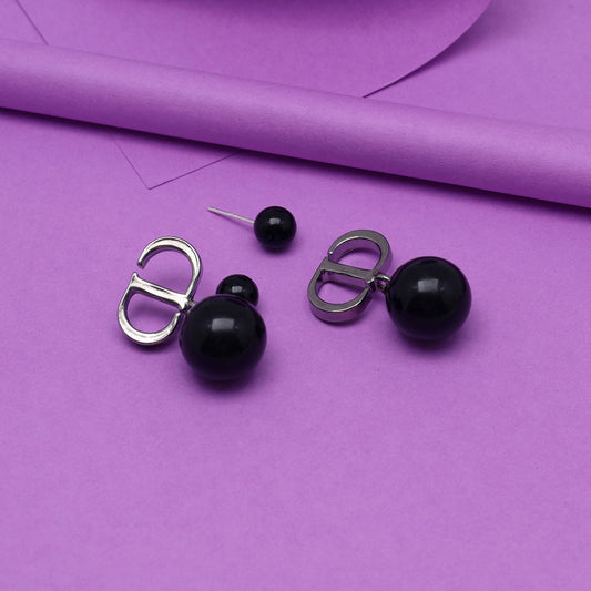Black Color Glass Stone Oxidised Earrings (GSE2465BLK)