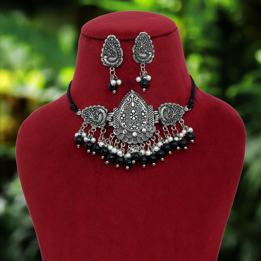 Black Color Choker Oxidised Necklace Set (GSN1628BLK)
