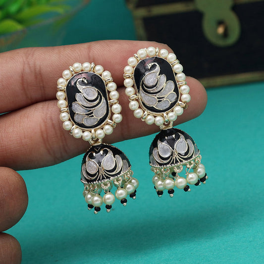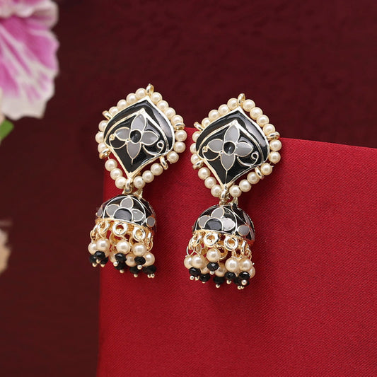Black Color Meenakari Jhumka (MKE1892BLK)
